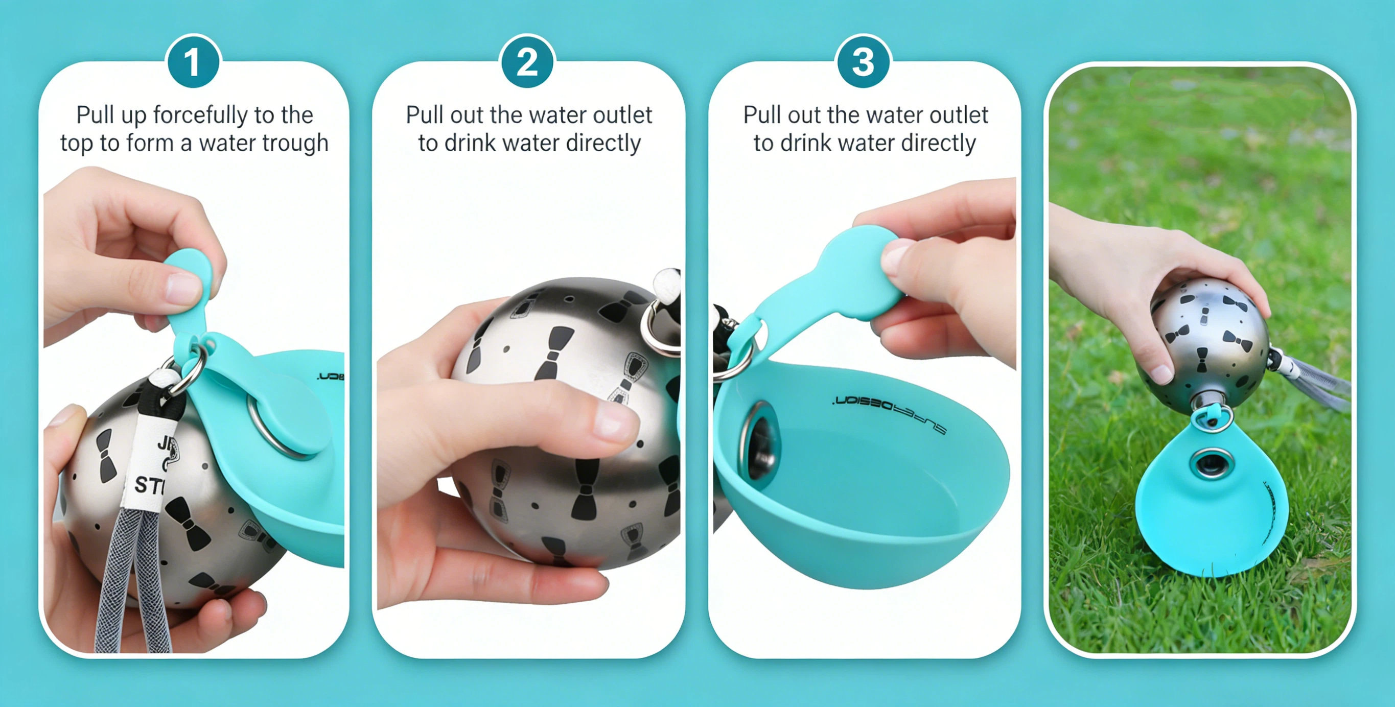 This dog water bottle is space-saving, which is very suitable for walking and traveling with your dogs.